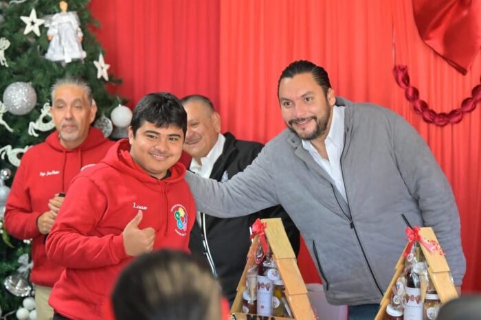 Monclova, Coahuila, 20 de diciembre de 2025.- Con el compromiso de impulsar la inclusión y el desarrollo de las personas con discapacidad, y con el respaldo del gobernador Manolo Jiménez Salinas, el alcalde Carlos Villarreal visitó el Centro de Atención Múltiple (CAM) 14, donde alumnas, alumnos y exalumnos presentaron un proyecto productivo de arcones navideños.