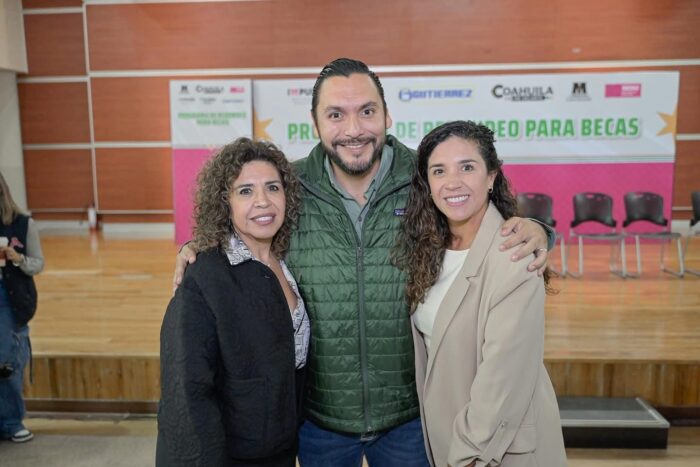 Monclova, Coahuila, 29 de octubre de 2025.- El alcalde Carlos Villarreal encabezó la entrega de 400 becas del Programa de Redondeo de Super Gutiérrez, para estudiantes de preparatorias y universidades, acompañado por Aracely Gutiérrez Salinas, directora general de la cadena comercial y Mabel Rodríguez Gutierrez, Subdirectora general de soporte de Súper Gutiérrez. Este programa cuenta con el apoyo del gobernador Manolo Jiménez refleja la unión de esfuerzos entre el Gobierno Municipal y la iniciativa privada para fortalecer la educación de las y los jóvenes monclovenses.