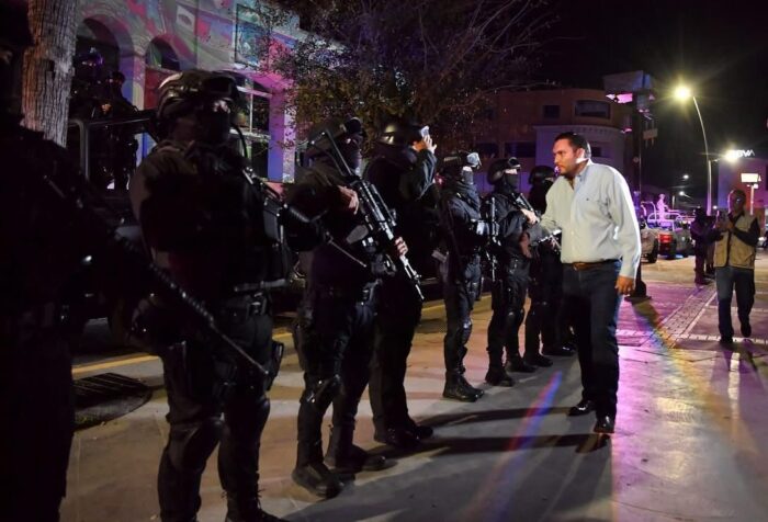 En la plaza principal y frente al edificio de la presidencia municipal se reunieron elementos de la Secretaría de la Defensa Nacional, Guardia Nacional, Grupo Reacción Centro, la Secretaría de Seguridad Pública de Coahuila y de la Policía Preventiva Municipal.