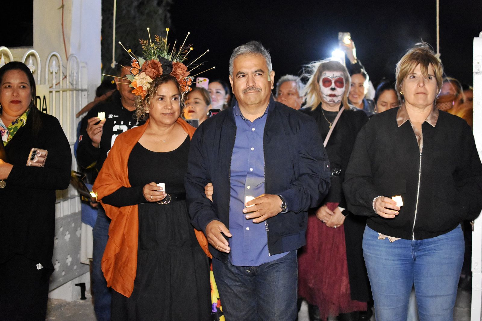 La velada contó con la presencia del Alcalde Ing. Víctor Manuel Leija Vega, la Presidenta Honoraria del DIF, Sra. Leticia Medina, autoridades municipales y decenas de familias que, con respeto y orgullo, se sumaron a este encuentro entre la vida y la muerte.