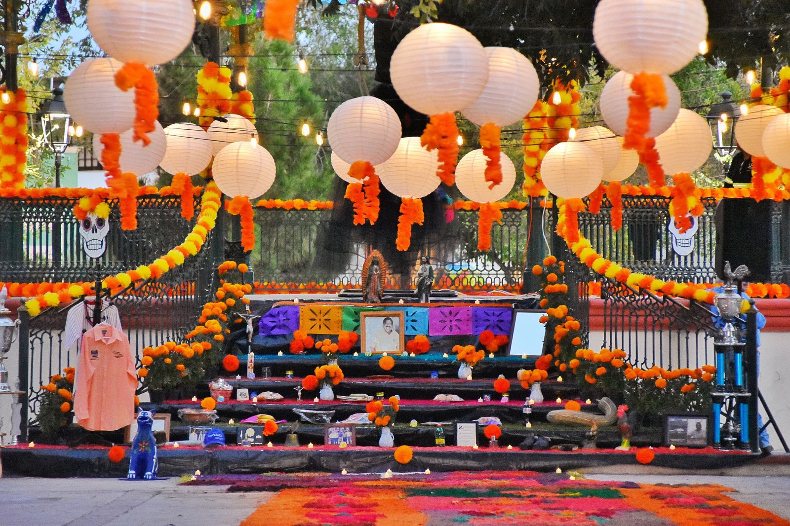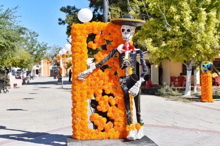 Cuatro Ciénegas, Coahuila a 01 de noviembre del 2025.- Con flores de cempasúchil, papel picado y figuras alusivas a la muerte, la plaza principal de Cuatro Ciénegas se transformó en un colorido escenario para celebrar el Día de Muertos, una de las tradiciones más emblemáticas y queridas en nuestro país.