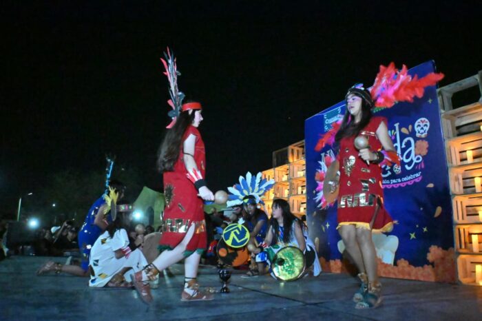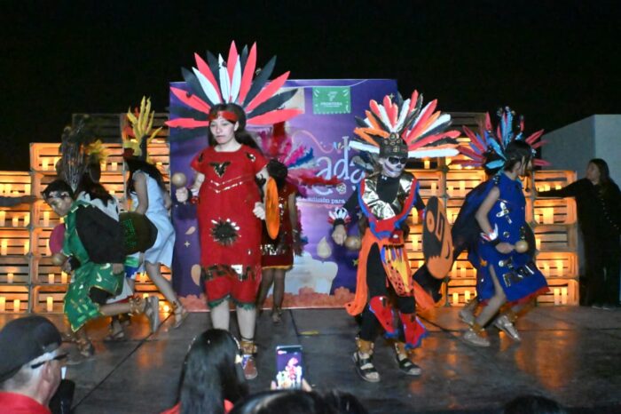 Durante la velada, los asistentes disfrutaron del Desfile de Catrinas y de la presentación del Ballet Folklórico Quetzalcóatl del profesor Uvaldo Barrera, cuyos coloridos trajes y danzas rindieron homenaje a las raíces mexicanas. La mezcla de música, flores y velas creó un escenario único, donde el arte y la devoción se unieron bajo un mismo resplandor.