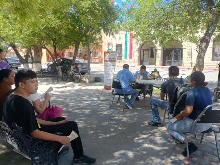 San Buenaventura, Coahuila; 11 de septiembre de 2025.- A través del alcalde Javier Flores Rodríguez, el departamento de Fomento Económico instaló un módulo de reclutamiento en la plaza principal de San Buenaventura con el objetivo de acercar oportunidades laborales a los habitantes del municipio.