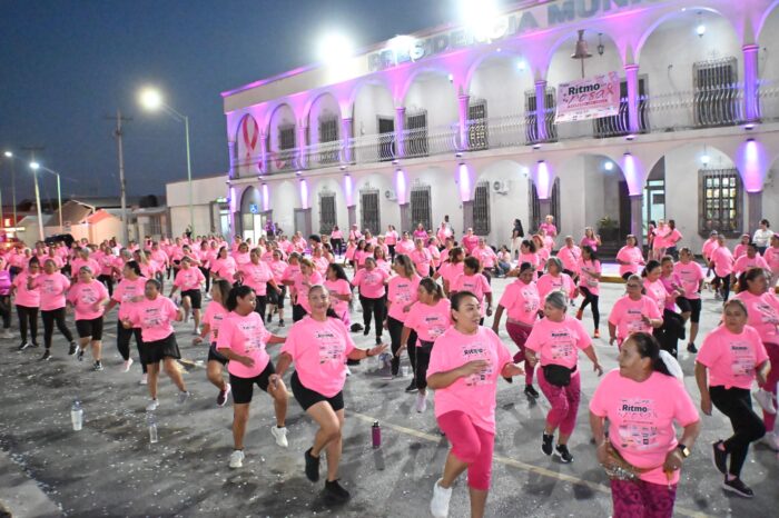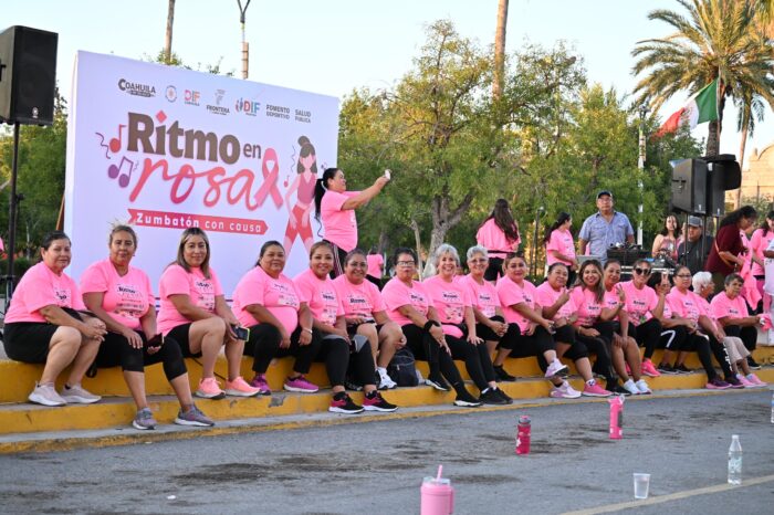 Frontera, Coahuila; a 17 de octubre de 2025.- Con el objetivo de generar conciencia sobre la importancia de la prevención del cáncer de mama y brindar apoyo a una mujer que enfrenta esta enfermedad, en la Plaza Principal de Frontera se llevó a cabo el Zumbatón con causa “Ritmo en Rosa”, un evento organizado por el Gobierno Municipal en coordinación con el DIF Frontera, a cargo, de manera honoraria, de la arquitecta Marifer Martínez Pérez, de su directora Karen Cadena, y con el apoyo de la Dirección de Salud y el Departamento de Fomento Deportivo.