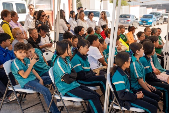 Acompañada por integrantes del cabildo, funcionarios municipales, vecinos y la comunidad estudiantil de la escuela Niños Héroes, la presidenta municipal encabezó el arranque de estos trabajos que responden a una necesidad planteada desde el inicio de la administración.