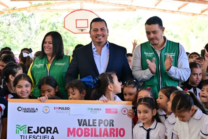 En representación del Gobierno Estatal, el coordinador regional de Mejora Coahuila, César Uriel Mata, destacó que la entrega de mobiliario no solo significa un apoyo tangible, sino una verdadera oportunidad para que niñas y niños cuenten con un mejor entorno escolar, reafirmando el compromiso con la niñez coahuilense.