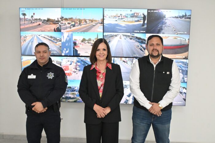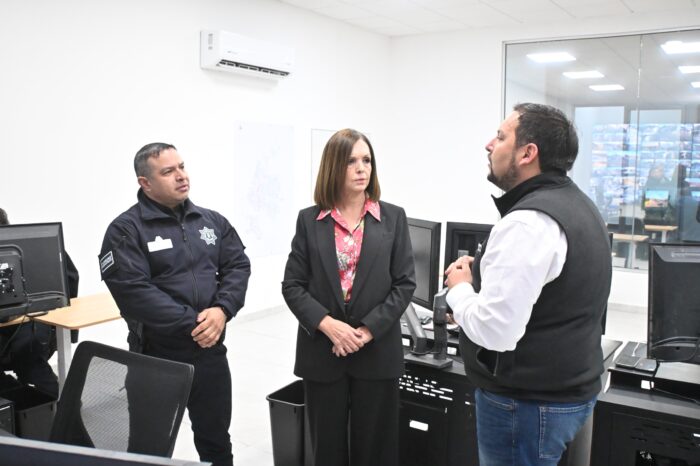Frontera, Coahuila, a 22 de diciembre de 2025.- Con el objetivo de fortalecer la seguridad de las y los fronterenses, la alcaldesa Sari Pérez Cantú, acompañada por el director de Seguridad Pública Municipal, Fernando González Dodero, realizó una visita a las instalaciones del Centro de Control y Comando (C2), donde supervisó el funcionamiento de este sistema estratégico para la prevención y atención de hechos delictivos.