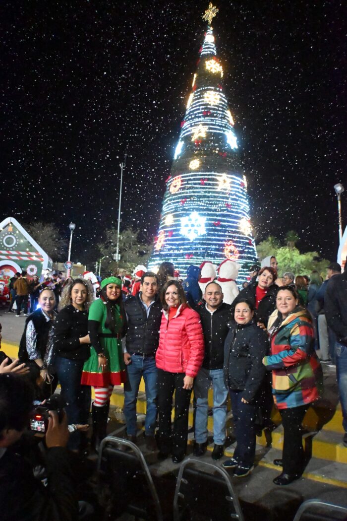 La alcaldesa resaltó el gran trabajo realizado por el equipo de Servicios Primarios, encabezado por Raúl Isaac Cárdenas, y por la Coordinación de Logística, dirigida por Ileana Ramos Ramos, quienes trabajaron de la mano con los departamentos de Educación y Arte y Cultura para dar vida a un escenario lleno de luz y color. Gracias a esta labor conjunta, los visitantes podrán disfrutar de un túnel iluminado de 10 metros, villas gigantes, un espectacular pino con luz LED y un sorpresivo y mágico show de nieve artificial. Entre duendes, luces y música, las familias vivieron una noche inolvidable en presencia de Santa Claus, quien llegó con su buzón para recibir las cartas de los niños. Sari Pérez expresó que esta atmósfera navideña refleja el entusiasmo y la unidad que caracterizan a las y los fronterenses.