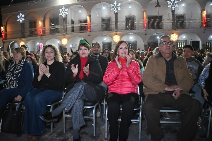 El arranque de la temporada navideña también estuvo acompañado de emotivas presentaciones artísticas: la Rondalla de la Secundaria Justo Sierra, del Profr. Pedro Limón; los villancicos del Grupo de Adulto Mayor del DIF Frontera y los encantadores números de danza de OG Studio, dirigidos por la Profra. Andrea Escamilla Sevilla, con sus grupos minis, kids y juvenil.