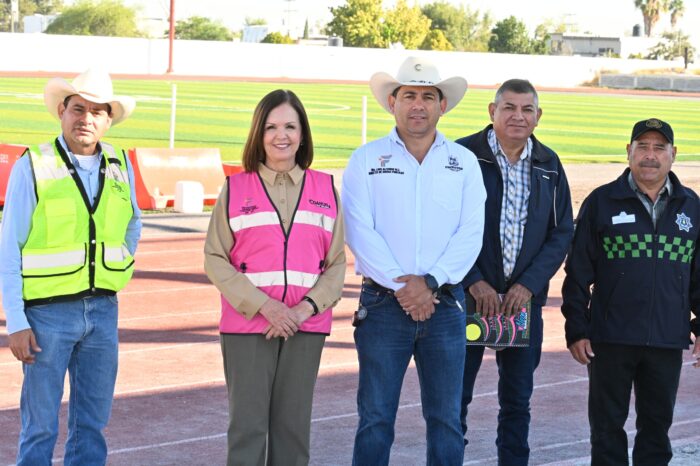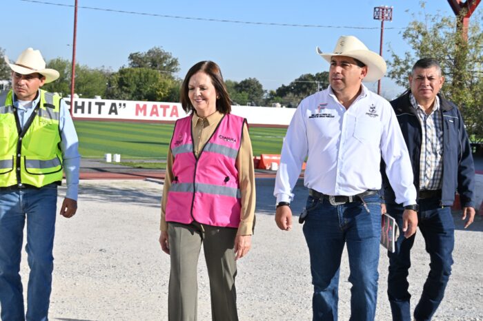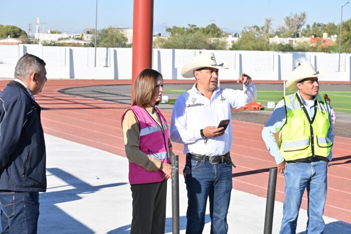 En el Centro Familiar Recreativo (CEFARE), la presidenta municipal constató el avance de la construcción del drenaje pluvial en la pista de tartán, obra que incluye la instalación de tubería, bocas de tormenta, canal de desagüe y nivelación de superficie, además de la rehabilitación de banquetas, muros y accesos. El director de Obras Públicas, Luis Alfonso González Garza, explicó que estas acciones garantizarán mayor seguridad para los deportistas y familias que frecuentan el lugar.