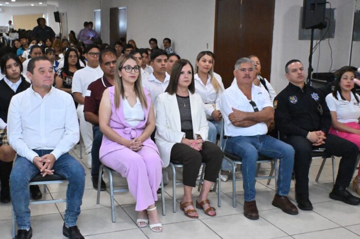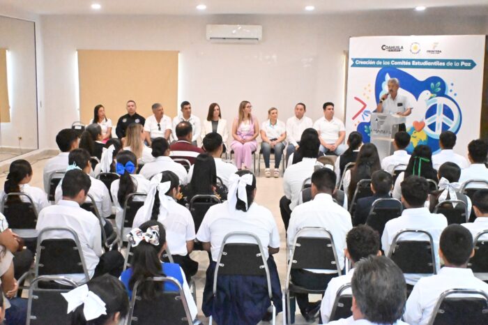 Frontera, Coahuila: a 22 de septiembre de 2025.- En el marco de la promoción de la cultura de paz en los entornos escolares, la alcaldesa Sari Pérez Cantú, encabezó en las instalaciones del DIF Municipal, la ceremonia de integración y toma de protesta de los Comités de Paz conformados por estudiantes de distintas instituciones educativas de la ciudad. Con este acto, la administración municipal confirma su compromiso con la juventud fronterense y con la construcción de comunidades más seguras, incluyentes y respetuosas.