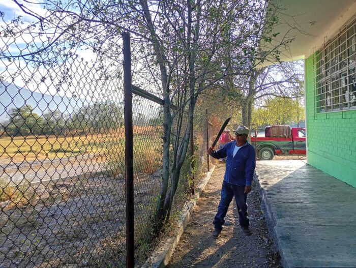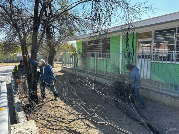 Durante una visita previa realizada en un lunes cívico, la alcaldesa se comprometió a enviar cuadrillas de apoyo a este plantel. Cumpliendo su palabra, personal del Departamento de Servicios Primarios acudió para llevar a cabo trabajos de limpieza general, deshierbe y poda de árboles, mejorando de manera inmediata las condiciones del entorno escolar.