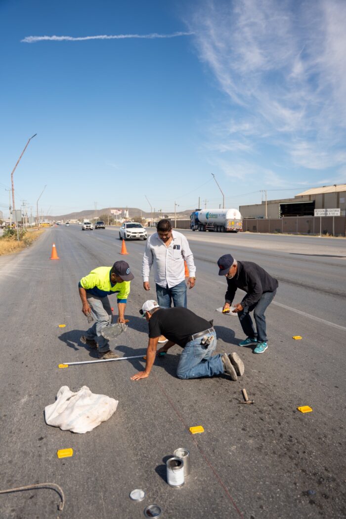Por indicaciones de la alcaldesa Yesica Sifuentes Zamora, personal del Departamento de Transporte y Vialidad comenzó la colocación de más de 50 vialetas, además de la aplicación de pintura en los próximos días al reductor de velocidad ubicado a la altura de la empresa Fasemex.